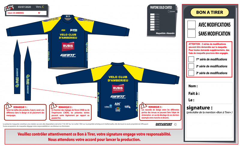 Désign des équipements Club VCA et Sportwear